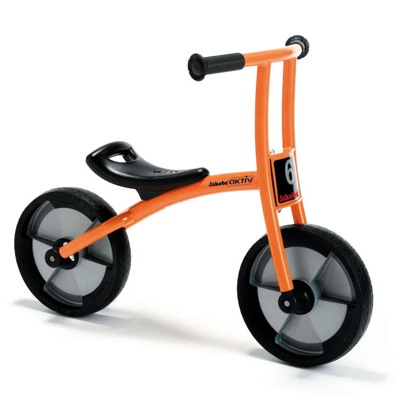 Jakobs-aktiv Laufrad. Das ideale Fahrzeug für erste Zweiradübungen für Kinder bis zum Alter von 6 Jahren geeignet. Es fördert Koordination und Gleichgewichtssinn. Alter 3-6 Jahre, Sitzhöhe 34cm, Lenkerhöhe 60cm, Gewicht 7,8kg. Alle Jakobs-aktiv Fahrzeuge haben eine dreijährige Garantie auf Gabel und Rahmen und eine einjährige Ersatzteilgarantie. Jedes Fahrzeug wird in zwei zusammensetzbaren Teilen geliefert und kann einfach und problemlos zusammengebaut werden.
