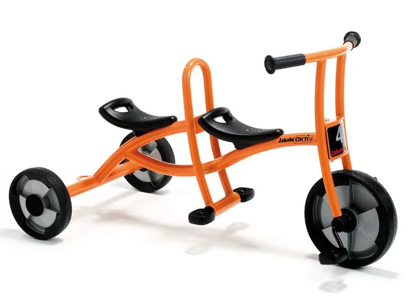 Jakobs-aktiv Taxi. Ein Fahrzeug zum Rollenspiel für zwei Kinder bis zum Alter von 7 Jahren geeignet. Er trainiert die Muskulatur und entwickelt die Motorik. Alter 3-7 Jahre, Sitzhöhe 35cm, Lenkerhöhe 60cm, Gewicht 14,8kg. Alle Jakobs-aktiv Fahrzeuge haben eine dreijährige Garantie auf Gabel und Rahmen und eine einjährige Ersatzteilgarantie. Jedes Fahrzeug wird in zwei zusammensetzbaren Teilen geliefert und kann einfach und problemlos zusammengebaut werden.