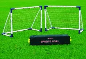Bausatz für 2 Tore (B 130 x H 100 cm) oder 1 Tor (B 180 cm x H 165 cm). Kunststoffprofile 22 bzw. 25 mm stark, inkl. Netzen, Bodenverankerungen und Tragetasche, Ges.Gew. ca. 8,5 kg.